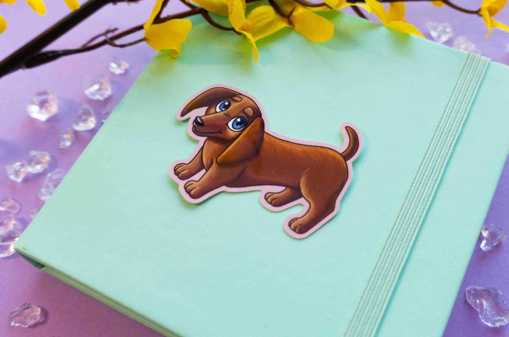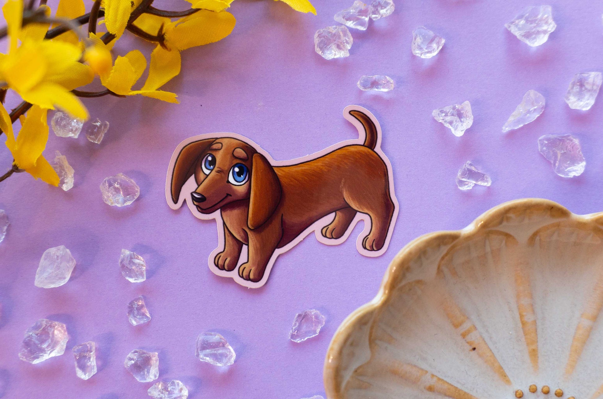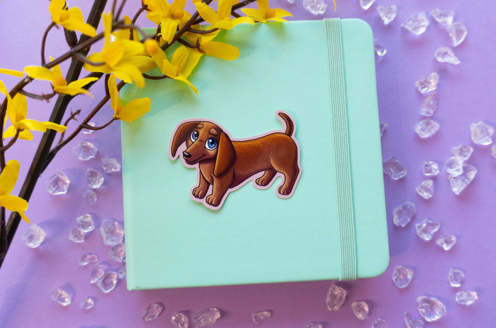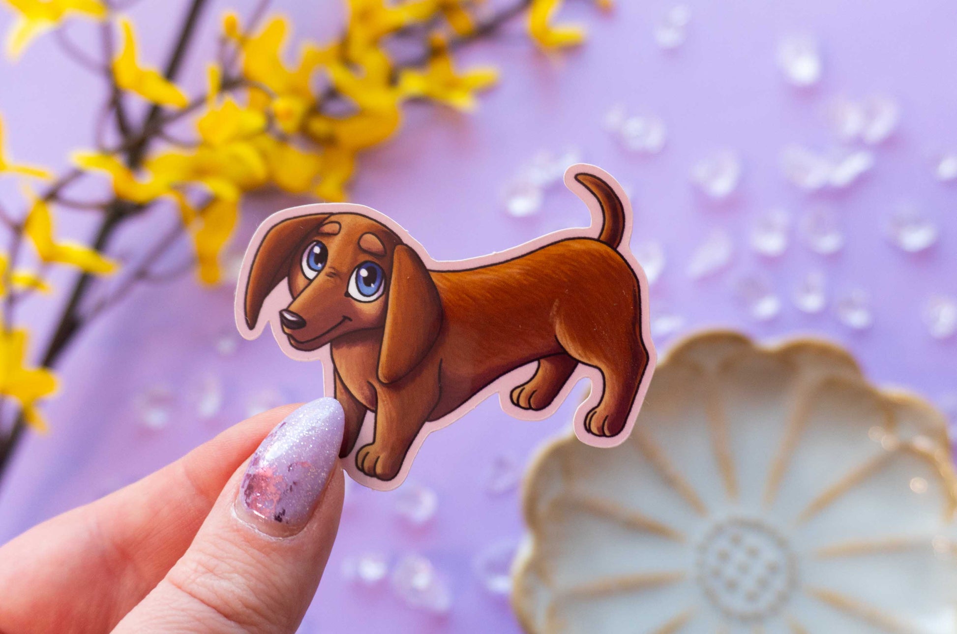 Te selvästi rakastatte mäyräkoiria! Niin moni toivoi tätä rotua tarraksi somessani, että enhän minä voinut missään nimessä sivuuttaa sitä! Tämä on supersuloinen, suklaanvärinen kaveri ihanilla isoilla silmillä! ❤️