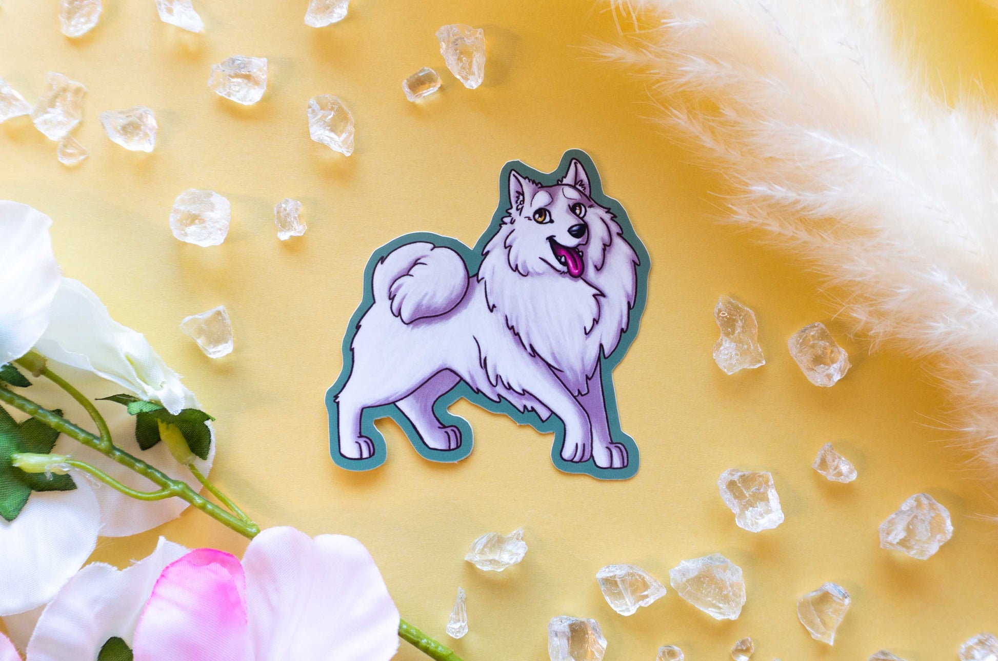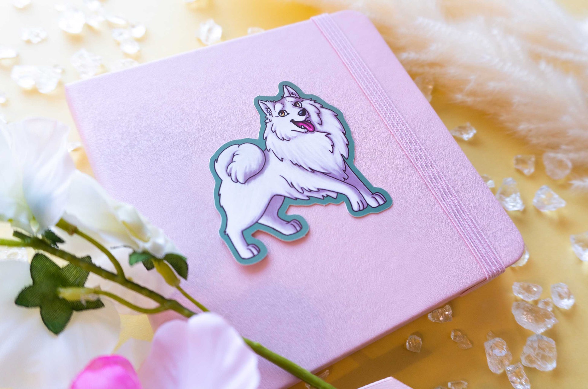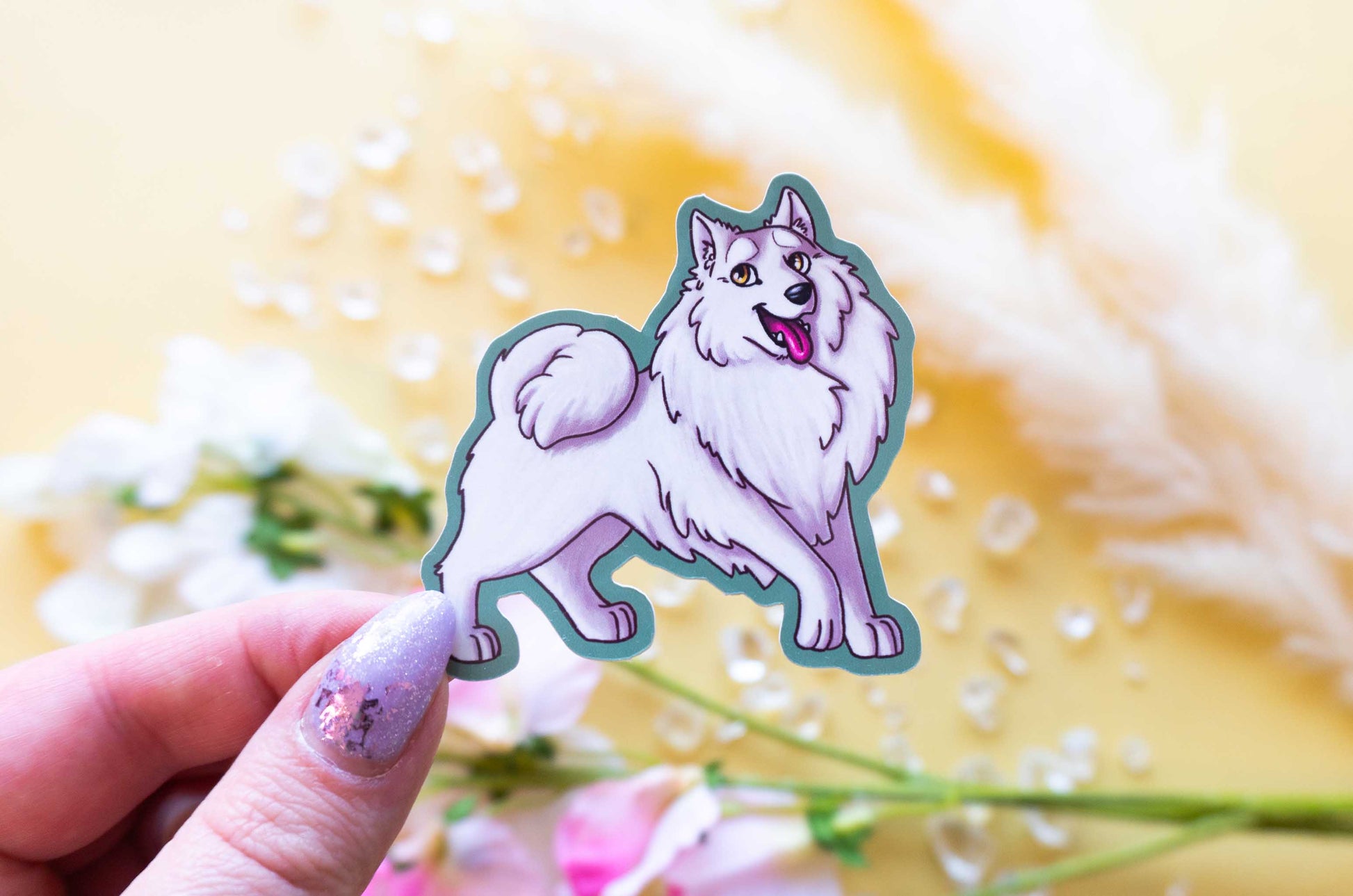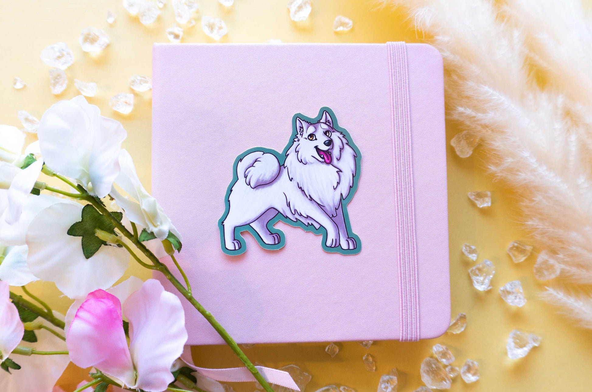 Samojedin otin mukaan tähän koirat-tarrasarjaan, sillä minulla itselläni on ollut Samojedinkoira. Tähän tarraan halusin tuoda erityisesti esille rodun iloisen ja energisen luonteen. Samojedit ovat aina lähellä sydäntäni!