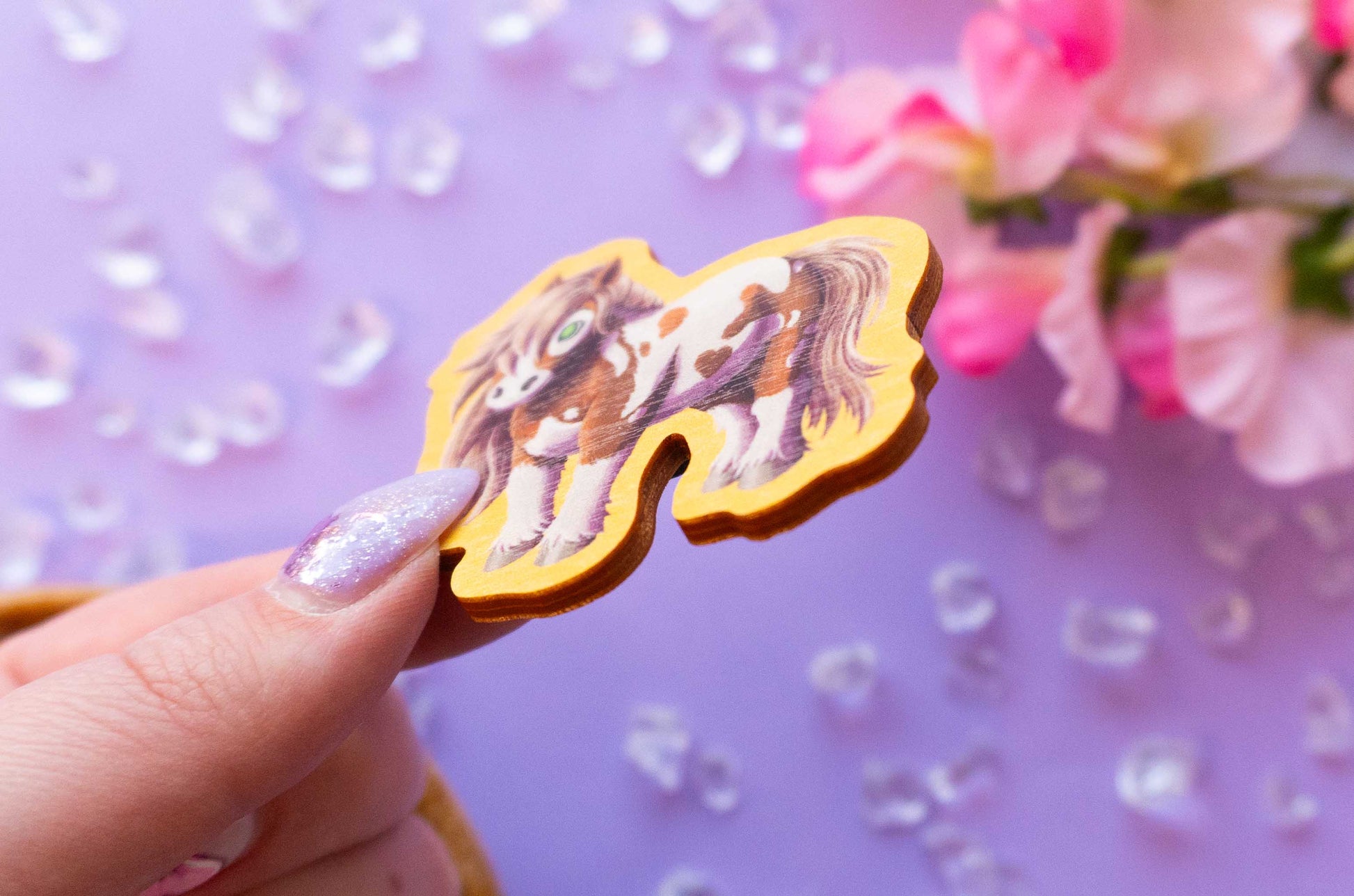 Suloinen Shetlanninponi magneetti kaikille jotka rakastavat hevosia ja poneja, tai muuten rakastavat tätä symppiksen näköistä kuvitusta! Huomasitko että tämän Shetlanninponin turkkiin on piilotettu sydän? Magneetin kuvitus on itseni kuvittama ja toteutettu digitaalisena piirroksena.